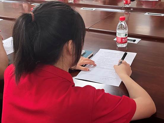 活动伊始,全体起立,奏唱国歌,启动仪式拉开帷幕。首先暑期社会实践队队长欧登波代表志愿者发言,他表示,暑期社会实践项目为员工提供了广阔的舞台,同学们定会履行誓言,全力以赴开展好今年的社会实践活动。接着公司党委副书记袁海山结合自身经历,向志愿者提出了建议及要求,他表示,在社会实践的过程中,要确保活动安全,不仅确保自身安全,也要确保支教员工的安全。随后公司党委书记李喜成为本次暑期社会实践授旗,并对实践团队成员提出了三点希望:一是希望团队时刻紧绷安全神经,确保暑期社会实践活动的顺利进行;二是希望成员珍惜本次机遇,全面提升自身综合素质并高质量的完成支教工作;三是希望员工充分发扬志愿者精神,争当时代先锋,在社会实践和志愿服务中践行“请党放心 强国有我”的铮铮誓言,同时努力“让青春在全面建设社会主义现代化国家的火热实践中绽放绚丽之花”。授旗后,志愿队代表于佳琳带领全体志愿队队员进行宣誓,志愿者们纷纷表示,在接下来的实践活动中将深化思想引领,把言语落到实处,磨炼意志、施展才华、开拓创新,在实践中成长,在奉献中成才。最后暑期社会实践团队成员签署安全责任书及支教协议并到楼下进行合影留念。本次启动仪式圆满结束。