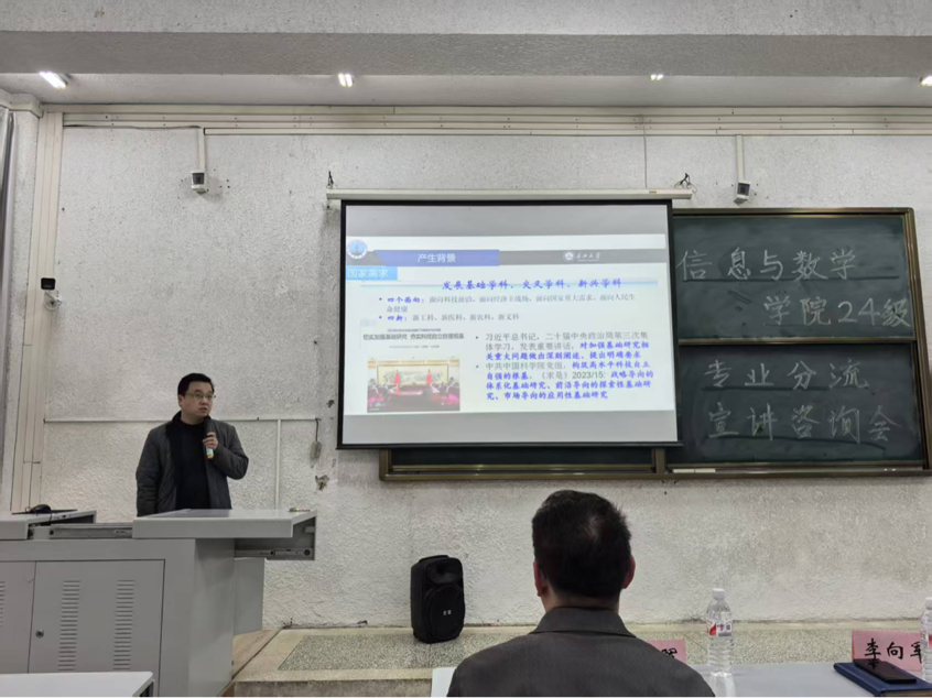 (通讯员 于志浩)4月2日,公司在英国上市公司官网365西校区5教103室举办2024级本科生专业分流宣讲会。参加本次会议的有分管教学副经理李向军、经理助理邹健、数学与应用数学系主任严政,会议由辅导员吴朝晖主持。本次会议旨在帮助24级员工深入了解数学类各专业特色,科学合理地选择专业,明确发展方向。