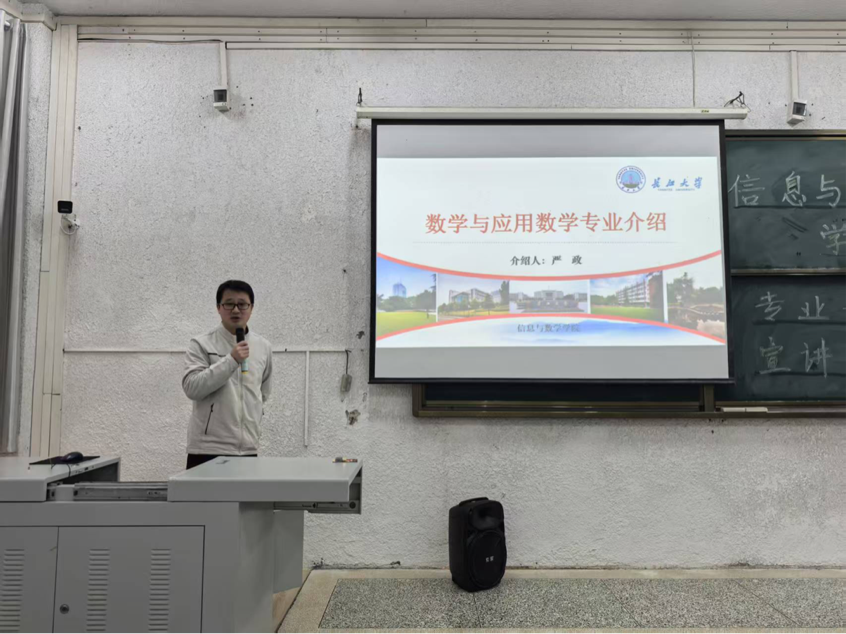 严政主任通过图文并茂的方式,结合自身的教学经验,从学科内涵、课程体系和升学就业三个维度为同学们讲解了该专业产生的背景,学科要求及就业前景等。他强调,该专业注重数学理论基础与教育实践的融合,核心优势是培养解决问题的能力。
