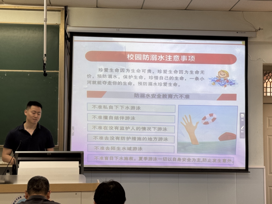 (通讯员 蔡满蓉)为增强研究生防溺水安全意识,提升应急自救能力,5月28日下午4时,公司在于13教D125教室召开防溺水安全教育专题班会。本次班会由团委书记黄何主讲,全体研究生参加。