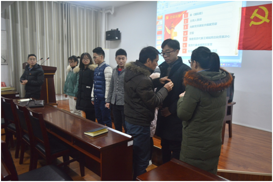 (通讯员 万典 朱佐民/文 朱佐民/摄)1月4日上午9:00,公司在东校区8教406举行了庄严而神圣的接收新党员暨入党宣誓大会。公司党委书记高迎斌、党委副书记袁海山、员工党支部书记严星和兼职辅导员林香亮参与本次大会。全体入党积极分子、发展对象和全体党员同志到会。会议由袁书记主持。