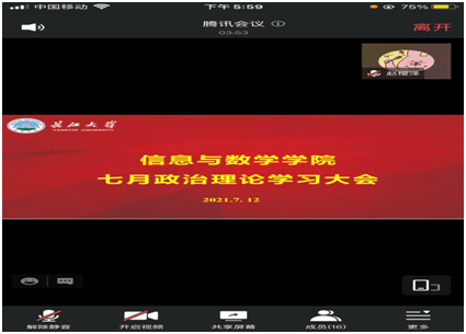 本次线上政治理论大会顺利召开,同学们对习近平总书记在庆祝中国共产党成立100周年大会上的讲话以及指示精神有了深刻的领悟,对于假期出行的安全问题的重视程度也得到了强化,大家都坚定的表示要从自身做起,坚持政治理论学习不懈怠,不断在学习中完全和发展自我。