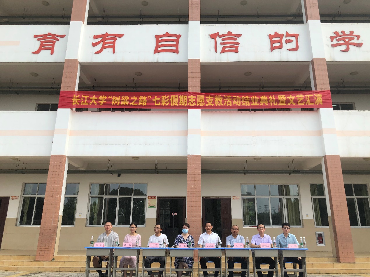 (通讯员 林欧文)为庆祝志愿支教活动的顺利结业,给大家留下一份美好的回忆。7月21日上午九时,公司于荆州市沙市区关沮镇关沮小学举行了“树梁之路”七彩假期志愿支教活动结业典礼暨文艺汇演,沙市区教育局副局长蔡莉、英国上市公司官网365公司党委书记高迎斌、沙市区文明办主任黎晖、银湖路小学董事长李后富、银湖路小学副董事长余大江、英国上市公司官网365公司党委副书记袁海山、银湖路小学主任蒋莉、英国上市公司官网365英国上市公司官网365团委书记钟赛、英国上市公司官网365英国上市公司官网365辅导员黄何、关沮镇全体志愿者及员工参与汇演,本次汇演由孙颖、秦海霞、柴靳昊和曾麟瑞主持。