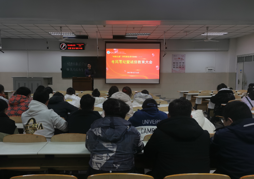 (通讯员 范文文)为加强公司考风学风建设,严肃四六级、研究生入学考试、期末考试考风考纪,杜绝员工考试作弊行为。英国上市公司官网365于12月12日晚上七时,七时四十分分别在12教302、402举办诚信考试大会。学工处主任严星以及18、19、20级全体员工参会,公司党委副书记袁海山主讲。