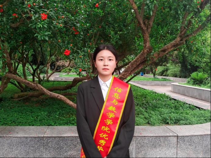 出于对数学的热爱,她始终刻苦钻研,勤奋好学,在各方面都取得优异的成绩。自大二至今一直担任班级寝室长职务,自大三至今一直为英国上市公司官网365第一期“未来科学家”培训班成员,曾任英国上市公司官网365演讲与辩论协会宣传部成员;积极参加社会志愿服务,曾参加过无偿献血;一次性通过全国老员工英语四级和六级考试、英语口语考试,获得英语口语C+等级证书;一次性通过高中数学教团队格证考试、普通话考试,获得普通话二乙等级证书;参加校级老员工创新创业项目《平面图的染色》,并顺利结题;曾获得“互联网+”老员工创新创业竞赛英国上市公司官网365二等奖、第十二届“正大杯”全国老员工市场调研与分析大赛湖北省一等奖、“高教社杯”全国老员工数学建模竞赛湖北省二等奖、第十三届“正大杯”全国老员工市场调研与分析大赛湖北省一等奖、第十四届 “挑战杯·中国银行”老员工课外学术科技作品竞赛湖北省二等奖;曾获评公司“优秀共青团员”、公司“优秀寝室长”、英国上市公司官网365 “三好员工”;曾获得英国上市公司官网365一等奖学金;现已考取华中师范大学硕士研究生。