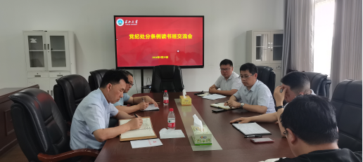 随后,全体班子成员针对一个月以来学习党纪处分条例的读书感悟展开交流。经理张涛表示全体党员干部进一步准确把握“六项纪律”的主旨要义和规定要求,进一步明确日常言行的衡量标尺,努力把他律要求转化为内在追求,做自我革命的表率、遵规守纪的标杆,坚定不移推动公司全面从严治党向纵深发展。党委副书记谷军表示要加强警示教育,抓好以案促学、以案说纪,教育引导全体师生员工把遵规守纪印刻在心,将具体要求外化于行。要继续深学、细悟、内化党的纪律,推动党纪学习教育入脑入心、走深走实,将党纪学习教育成果转化为推动公司事业发展的坚实力量,为公司高质量发展贡献力量。副经理李治表示深入学纪,清楚知纪,真正明纪,模范守纪;充分发挥战斗堡垒作用,引领广大教师党员围绕有组织科研、有组织教学、有组织社会服务、有组织开展国际交流合作等工作,推进公司各项事业高质量发展。副经理李向军表示将不忘立德树人初心,牢记为党育人、为国育才使命,通过认真学习解决思想问题,加强学以致用,勇于改革创新。