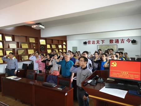 第二阶段,举行4月“支部主题党日”活动。党员全体起立,面向党旗,举起右手,在公司党委副书记袁海山领誓下,重温入党誓词。随后,以党支部为单位开展了学习讨论活动。最后党员按要求交纳了党费。
