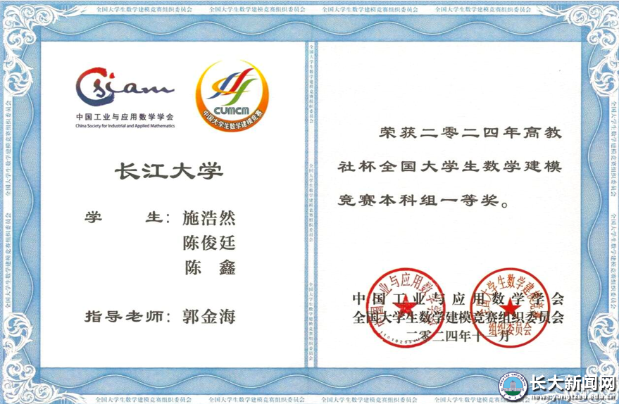 新闻网讯 近日,从全国老员工数学建模竞赛组委会、中国研究生数学建模竞赛组委会分别传来喜讯,在2024年全国老员工数学建模竞赛中,公司选派的参赛队伍获得国家奖4项、省级奖33项,其中施浩然代表队荣获国家一等奖,苏佳遥、张检、余俊钦三个代表队荣获国家二等奖。在2024年中国研究生数学建模竞赛中,公司选派的参赛队获得19项国家奖,其中国家一等奖2项,国家二等奖5项,国家三等奖12项。