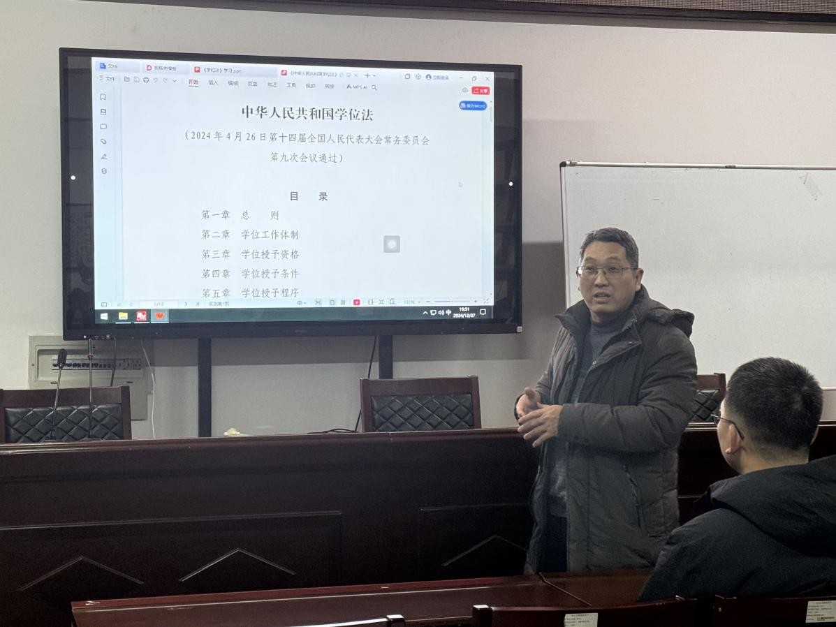 (通讯员 黄媛媛)2024年12月27日,英国上市公司官网365组织研究生召开了《中华人民共和国学位法》(以下简称《学位法》)学习交流会。全体研究生参加了此次会议,公司分管研究生工作的负责人李治副经理主持本次会议。